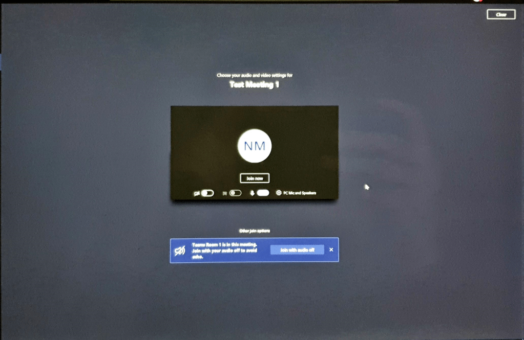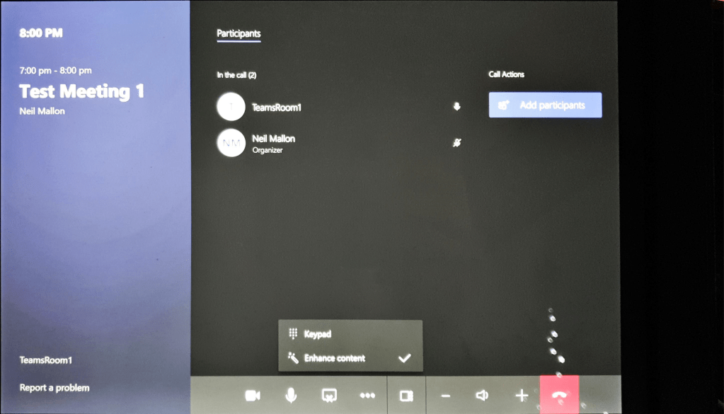 At this stage (providing all the config worked ok and the Microsoft ‘magic’ has happened in the background – replication across O365 etc) your Meeting Room account and device is now ready. You can use it for meetings, the Content Camera and its transparency will all work with Content Enhancements too.