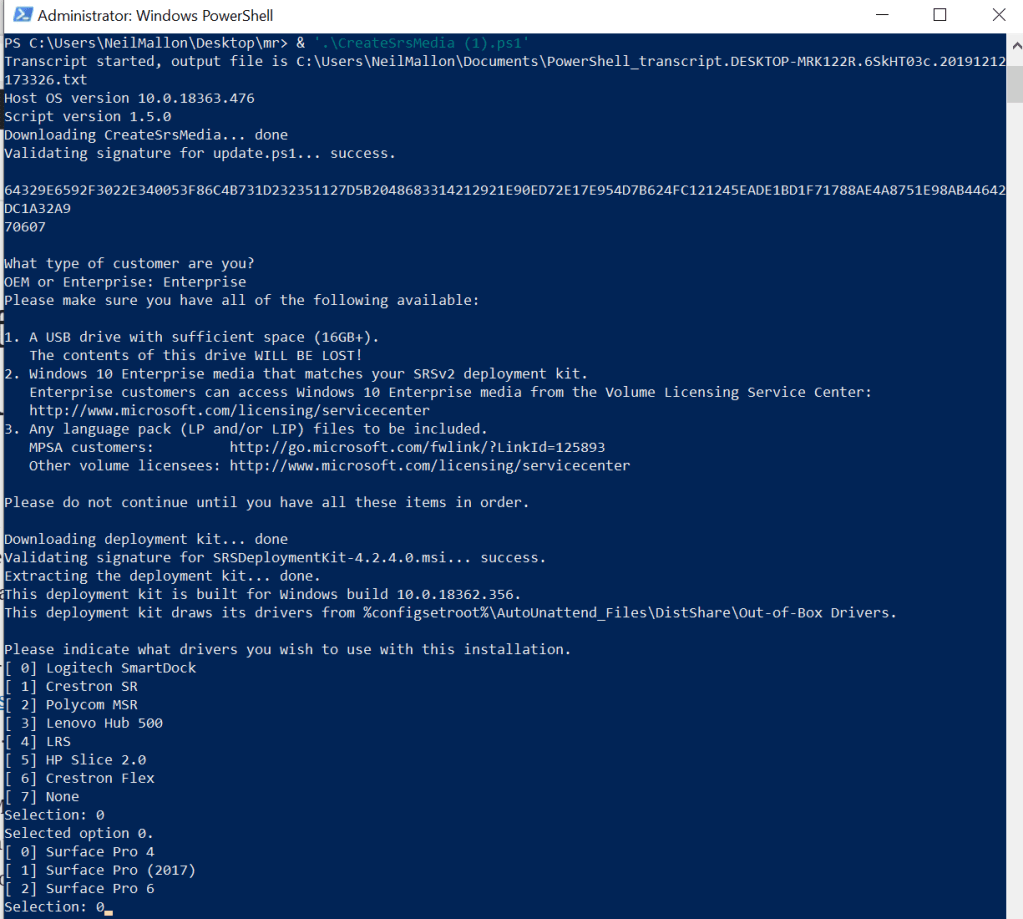 You will need either the IoT OEM media or Windows 10 Enterprise (1903 ISO build). At the time of writing don’t use Win10 v1909 as the script expects the build version max of v1903 for now.